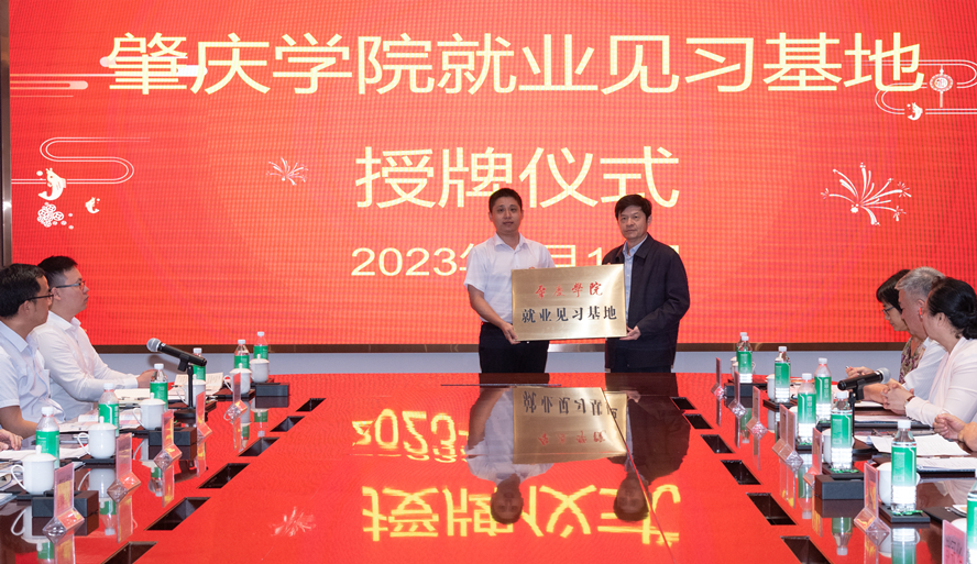 会上,曾桓松分别为中国联合网络通信有限公司肇庆市分公司、广东洁美电子信息材料有限公司、广东合瑞盛科技有限公司、广东华红食品集团股份有限公司的企业代表颁发万象城娱乐awc线路就业见习基地牌匾。