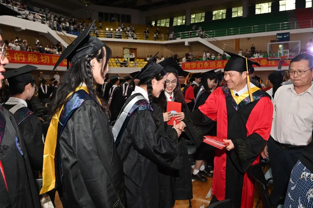 亲爱的同学们,在这凤凰花开的毕业季里,借胡适先生曾赠给毕业生的赠言:“不要抛弃学问。”在知识与技术日新月异的今天,愿你们能够保持终身学习,未来的路不会一马平川。愿你们不躺平、不妥协、不放弃,怀揣梦想、脚踏实地,向上而行。愿你们在未来的路上永远年轻,永远热泪盈眶。