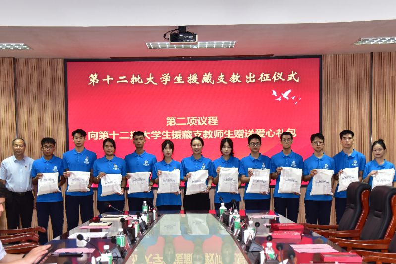 仪式上,吴业春向支教服务队颁发证书、授旗,相关职能部门领导及二级学院领导为服务队队员佩戴绶带,并赠送《习近平谈治国理政》第四卷等学习资料和爱心礼包。曹阳带领全体援藏支教队员进行出征宣誓。