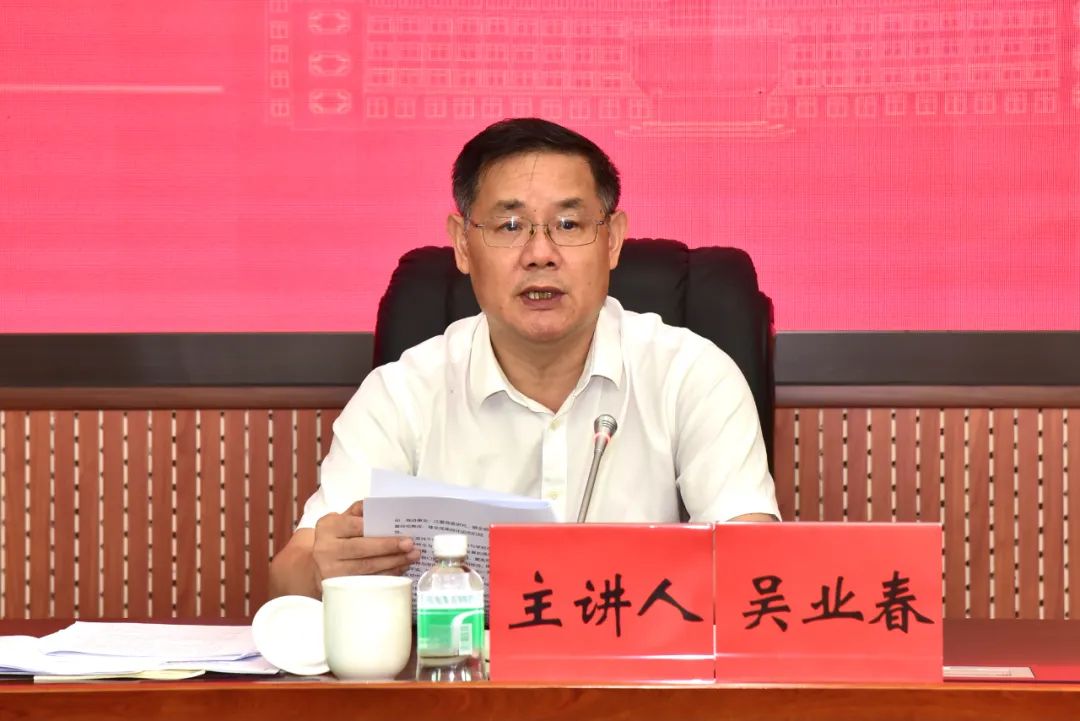 校党委书记谢冠华、校长吴业春讲授专题党课,校领导、帮扶队长、党委委员、全体中层领导干部、主题教育办成员、全校党支部书记、全体思政课教师、辅导员、全体专职组织员参加。