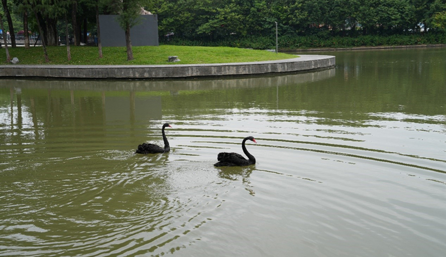 据了解,当天下午,3只黑天鹅就带着砚园师生的祝福在广州美术学院绿湖安家。