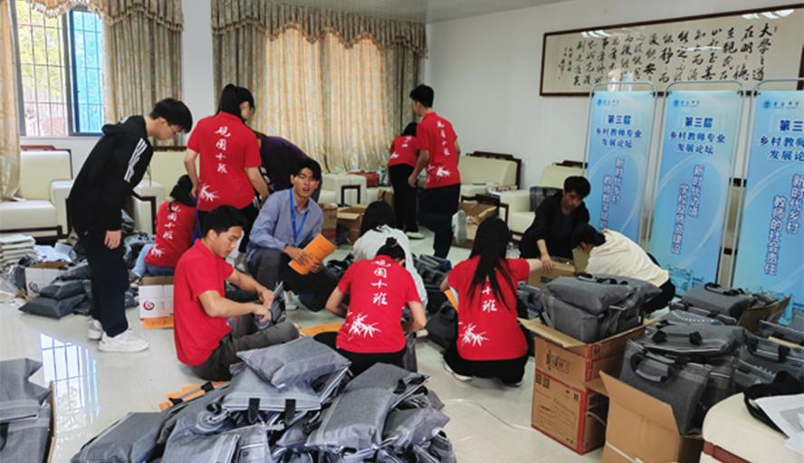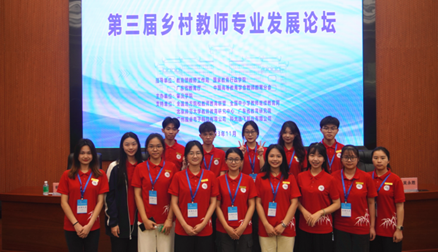 本网讯 11月24日-25日,第三届乡村教师专业发展论坛暨第十四届地方院校校长论坛在我校举行。砚园十班学生作为本次大会的工作人员,主要提供迎宾及后勤保障服务,同学们以纪律严明、认真负责的态度,展现了砚园学子的风采。