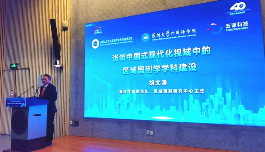本网讯 12月17日,深圳大学外国语学院、深圳大学区域国别与国际传播研究院举办深圳大学湾区论坛之分论坛“人工智能时代中国式现代化与国际复合型创新人才培养”。副校长胡文涛受邀出席论坛并做主旨演讲。