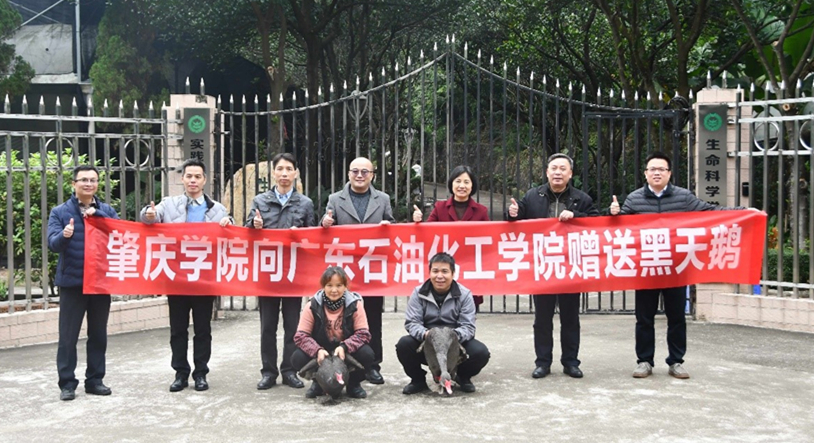 本网讯 12月18日,我校向广东石油化工学院赠送一对黑天鹅,加强与这所同处粤西地区高校的交流。