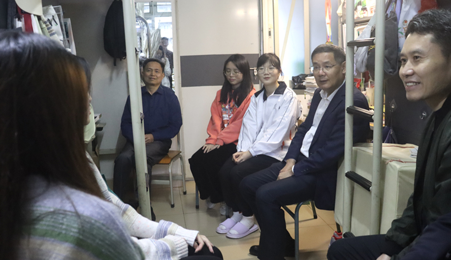 吴业春还深入厚德书院,走访了联系的学生宿舍,了解同学们在学习、生活等方面的现状和需求,鼓励同学们要坚定理想信念,努力学习,加强锻炼,不断提高个人综合素质。吴校长的亲切关怀,让同学们倍感温暖、备受鼓舞。