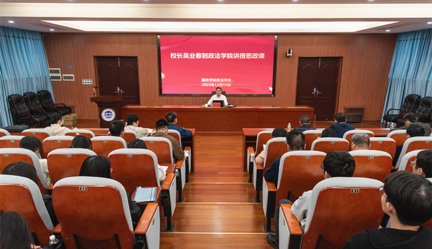 本网讯 为深入贯彻落实《万象城娱乐awc线路领导干部深入基层联系学生工作实施方案》精神,把学习党的二十大精神和强化学生工作紧密结合起来,12月13日,吴业春校长在第二会议室为政法学院全体教职工及21思政3班全体学生讲授思政课,在会后参加并指导该班班会课,到学生宿舍开展联系走访活动。政法学院党委书记侯玉基主持会议并陪同联系走访。