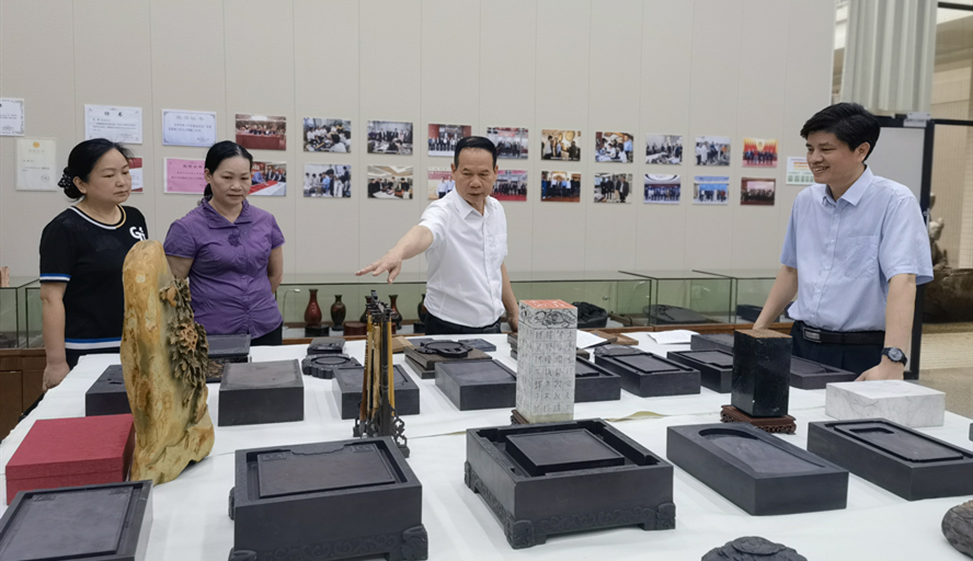 欧洪湛听取工作室工作汇报后,对工作室的建设情况、取得的成果给予充分肯定,并就工作室在人才培养、社会服务、未来发展等方面提出了要求。他希望工作室继续发挥示范引领作用,传承端砚文化和技艺,创作好端砚作品、讲好端砚故事,为传承端砚文化培育更多高素质人才,助力学校高质量发展。