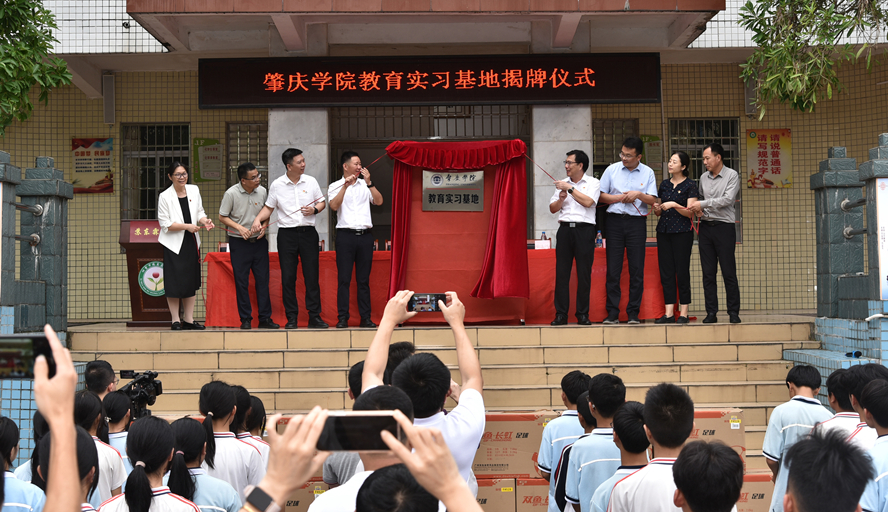 在四会市苏东霖中学,谢冠华、汪克承等共同为万象城娱乐awc线路教育实习基地揭牌,并开展体育浸润行动计划暨体育器材捐赠仪式。此次活动我校向苏东霖中学捐赠一批价值两万元的足球器材,有效解决乡镇学校体育器材需求,为校园体育文化增添活力的同时进一步发展足球特色教育,促进该校学生德智体全面发展。