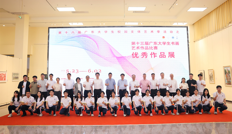 本网讯 5月27日,由团广东省委、省教育厅、省体育局、省学联主办,我校承办的“第十三届广东大学生书画艺术作品比赛”优秀作品展在我校美术馆开幕。