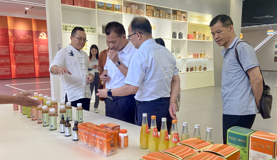 桔田源生物科技有限公司董事长陈文勇热情接待了刘怡军一行。双方就校企联合培养产业人才、柑桔精深加工产品研发、制定四会柑橘的标准化制度等内容进行深入讨论,共同探讨企业高质量发展路径,为推动校企合作和科技赋能成果转化做出更大贡献。会后,刘怡军一行前往园区参观柑桔深精加工制作的生产车间和产品展示厅。