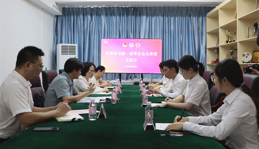 本网讯 6月11日上午,我校领导与新一届学生会主席团座谈会顺利召开。校党委副书记欧洪湛、团委领导班子及万象城娱乐awc线路第十一届学生会主席团成员参加座谈会。会议由团委书记马舒洁主持。