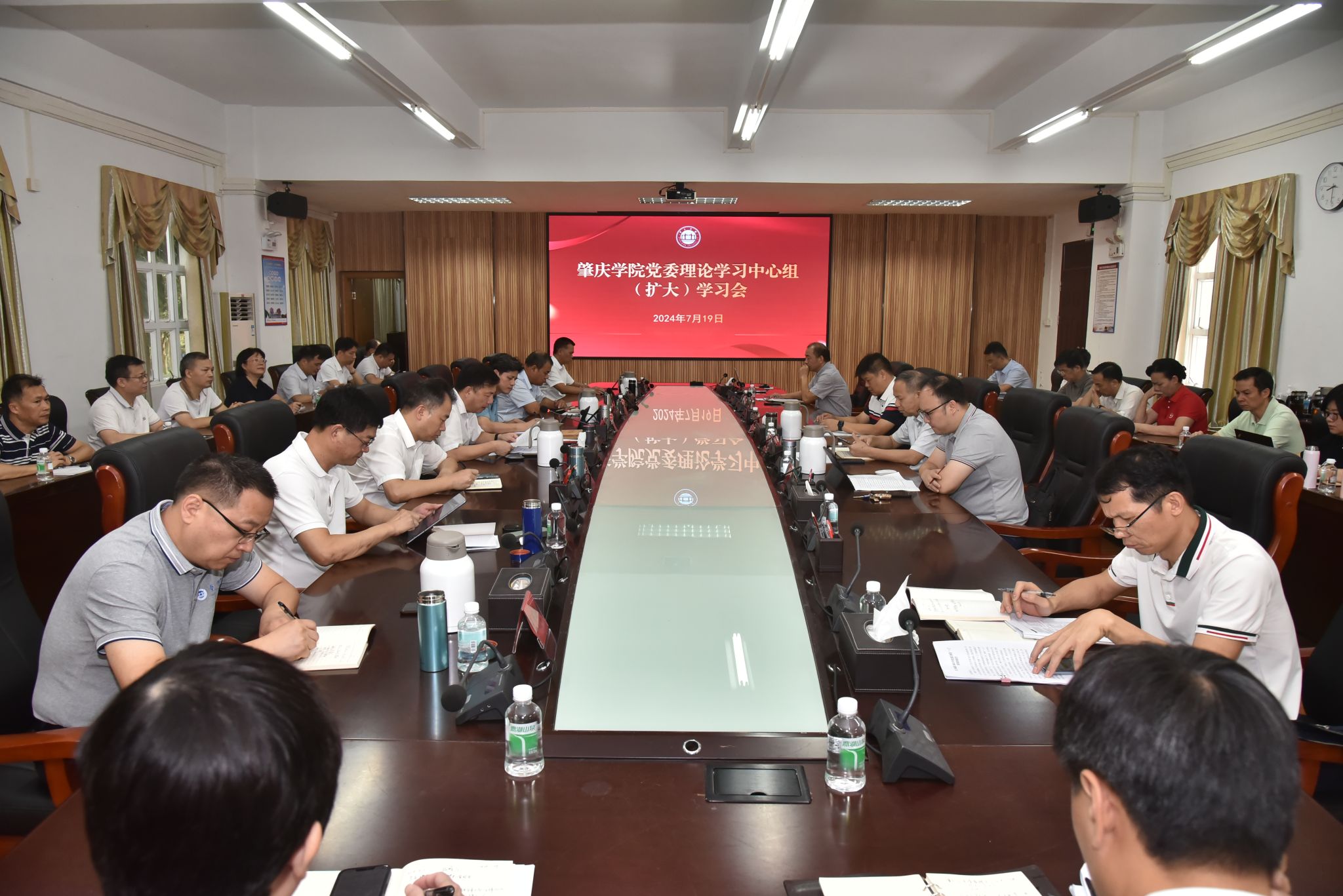 本网讯 7月19日,校党委召开理论学习中心组(扩大)学习会,传达学习党的二十届三中全会精神。校党委书记谢冠华主持并领学。校党委中心组成员、二级党组织书记参加学习。