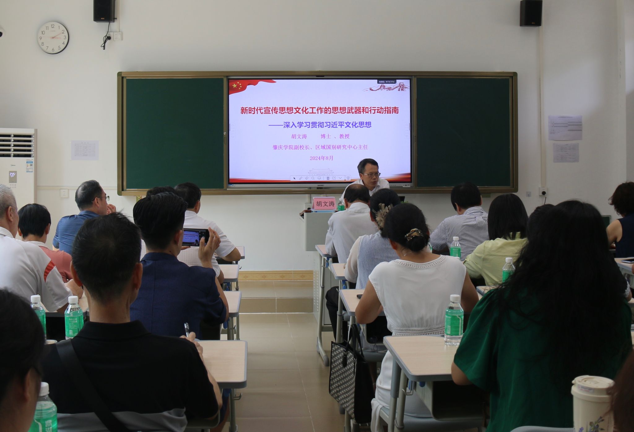 近日,民进肇庆市委会举办纪律学习教育推进会暨骨干会员新会员培训班。副校长胡文涛应邀在会上作中共二十届三中全会精神专题报告。肇庆市政协副主席、民进肇庆市委会主委何健浩等40多人参加学习培训。
