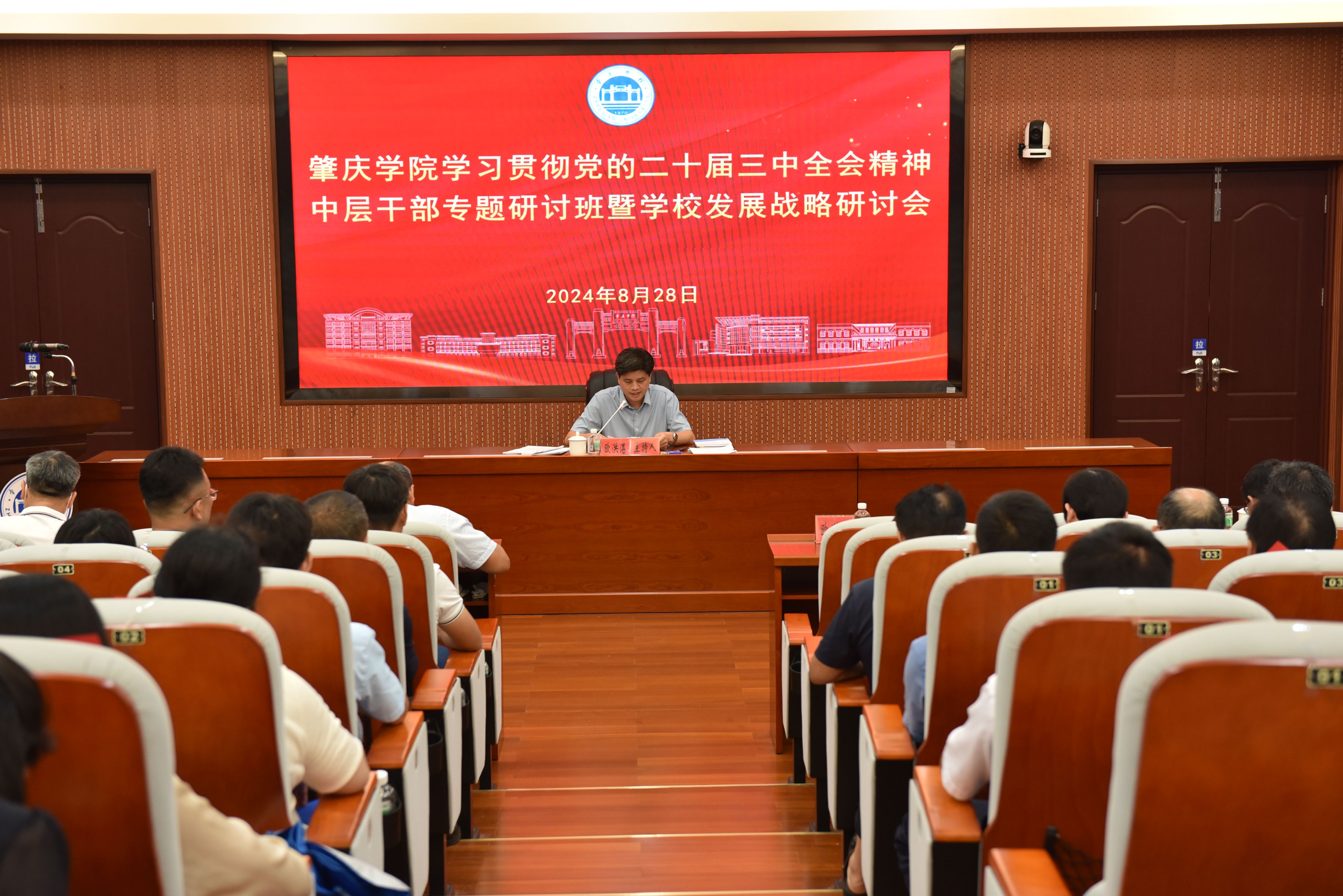 本网讯 8月26日至28日,学校举办学习贯彻党的二十届三中全会精神中层干部专题研讨班暨学校发展战略研讨会,深入学习贯彻党的二十届三中全会精神,传达学习贯彻习近平总书记在党的二十届三中全会上的重要讲话精神和全会决策部署,抓好全会精神的学习宣传贯彻工作,分析研判学校发展形势,研讨推动学校高质量发展的战略举措。