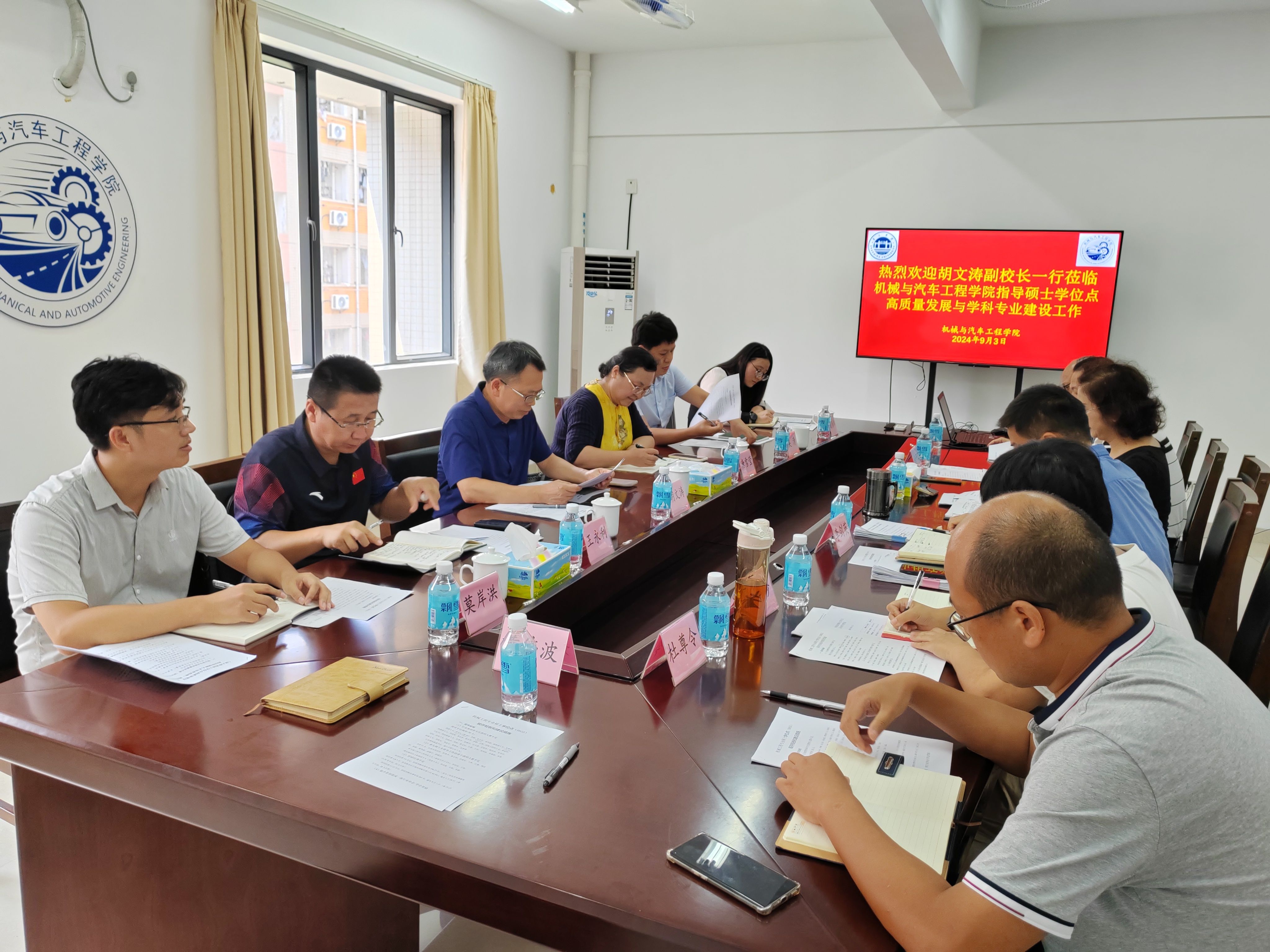本网讯 9月3日至4日,副校长胡文涛赴机械与汽车工程学院、体育与健康学院、旅游与历史文化学院开展硕士学位点和学科建设工作调研,研究生院、发展规划部有关负责人陪同,机械与汽车工程学院、体育与健康学院、旅游与文化学院党政领导班子、导师和优秀青年教师代表出席会议。