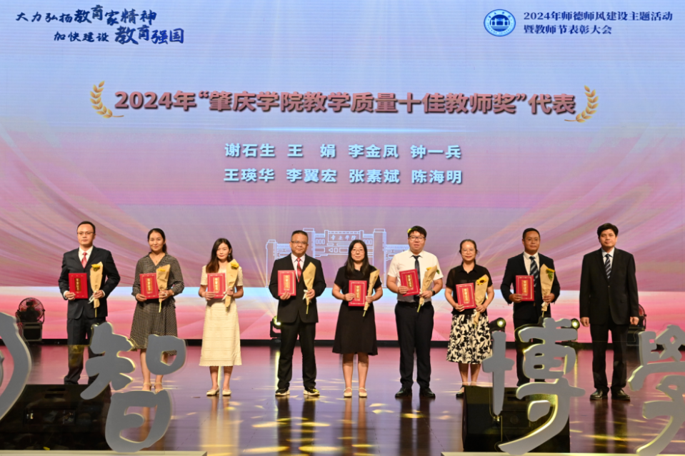 校党委书记谢冠华,校党委副书记欧洪湛,副校长肖起清、李新昌、唐冬冬、胡文涛,广东工业大学帮扶工作队队长刘怡军等校领导在前排就坐,全体中层领导干部、获奖教师和师生代表参加。本次表彰大会由文学与传媒学院向海燕老师主持。