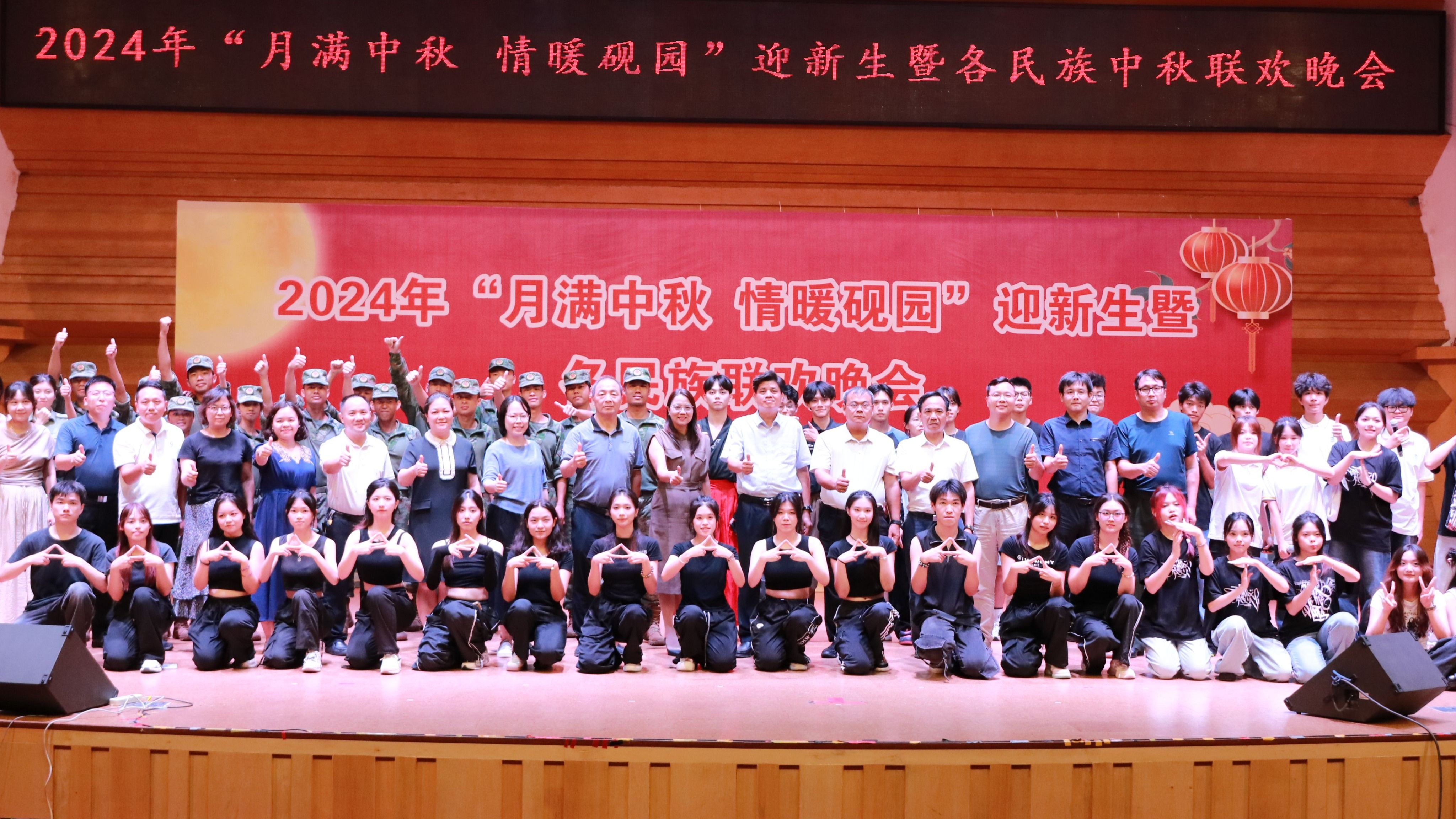 本网讯 为庆祝中秋佳节,同时热烈欢迎2024级新生的到来,9月17日晚,学校“月满中秋 情暖砚园”迎新生暨各民族中秋联欢晚会成功举办。晚会主会场设在万象城娱乐awc线路陈熹音乐厅内,各二级学院在各自训练场举行了分会场欢庆活动。学校党委副书记欧洪湛、副校长李新昌出席活动,各单位相关负责人参加主会场活动。