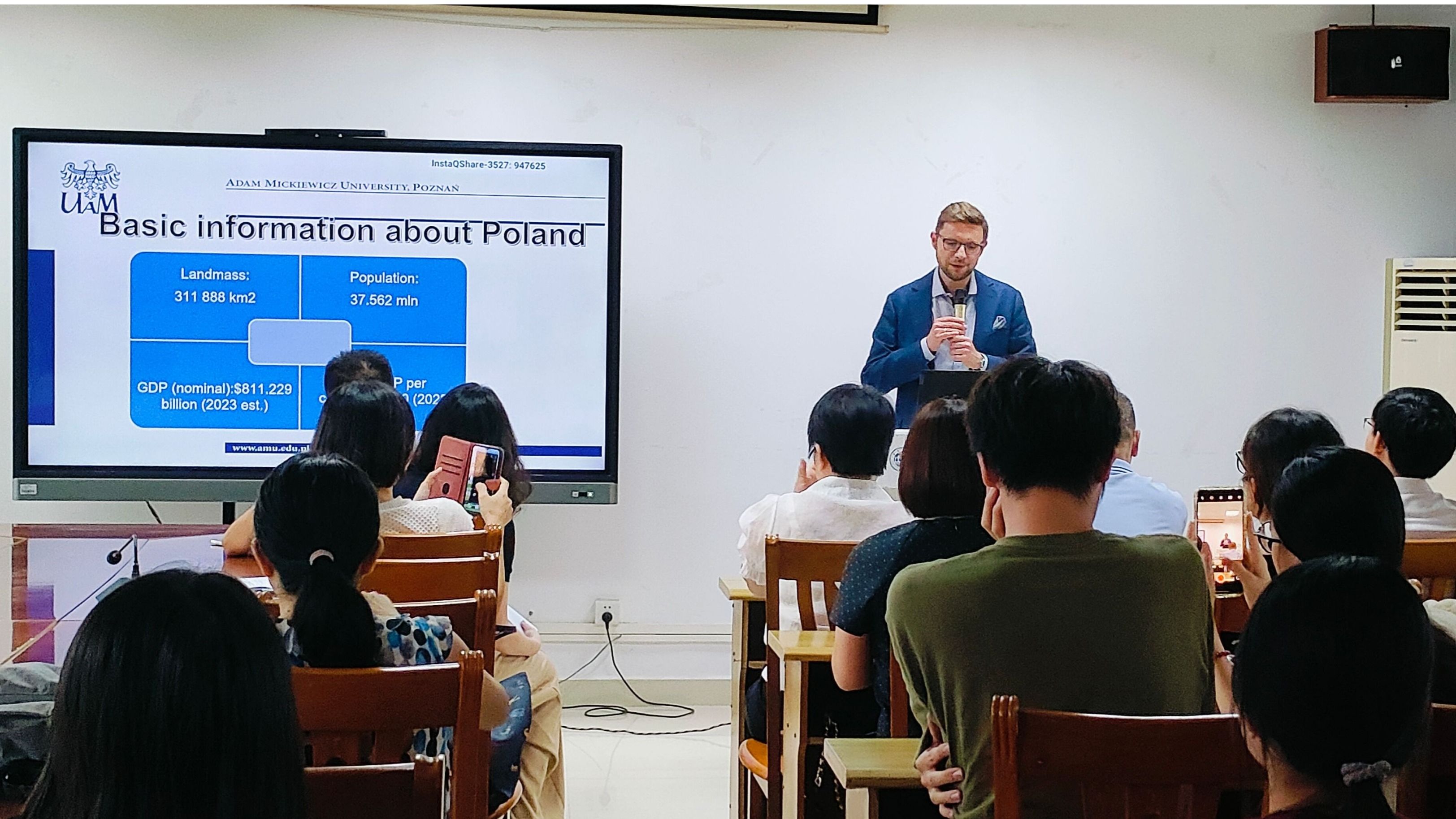 此次来访,波兰密兹凯维奇大学的专家学者面向全校师生作多场讲座。27日下午,波兰密兹凯维奇大学政治与新闻学院战略研究系拉法尔·威斯涅夫斯基博士面向政法学院师生作题为《当代波兰:政治、欧洲关系与外交政策》的英文学术报告。29日下午,波兰密兹凯维奇大学跨学科研究中心主任、中国事务负责人拉法尔·蒂姆切克R教授在学术报告厅面向全校学子作赴波兰密兹凯维奇大学交流学习的宣讲推介,来自各学院300余名学生参加,反响热烈。
