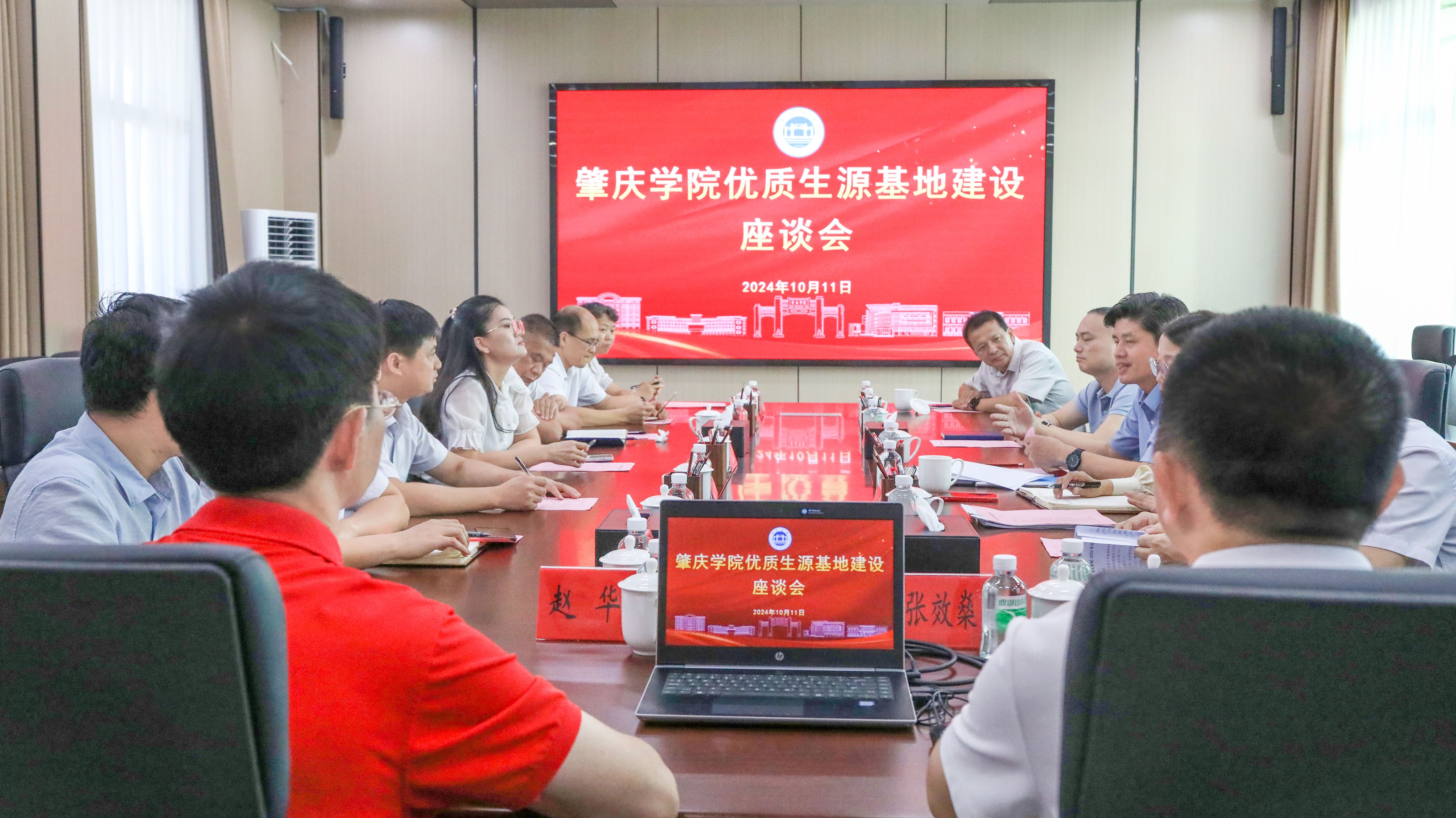 本网讯 10月11日,我校召开优质生源基地建设座谈会。校党委副书记欧洪湛出席会议,肇庆市招生办及云城区、罗定市、新兴县教育局负责同志、10所优质生源基地学校代表参会。座谈会由学工部(招生与就业指导中心)部长、主任陈玉华主持。