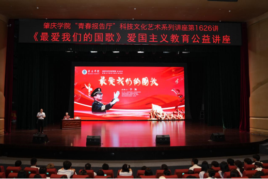 讲座尾声,在于海教授的带领指挥下,全体师生肃立,共同唱响国歌。嘹亮的国歌声响彻校园,现场师生心潮澎湃、热血沸腾,用歌声表达着对祖国的深深热爱和坚定信念,民族自豪感在每个人心中油然而生。