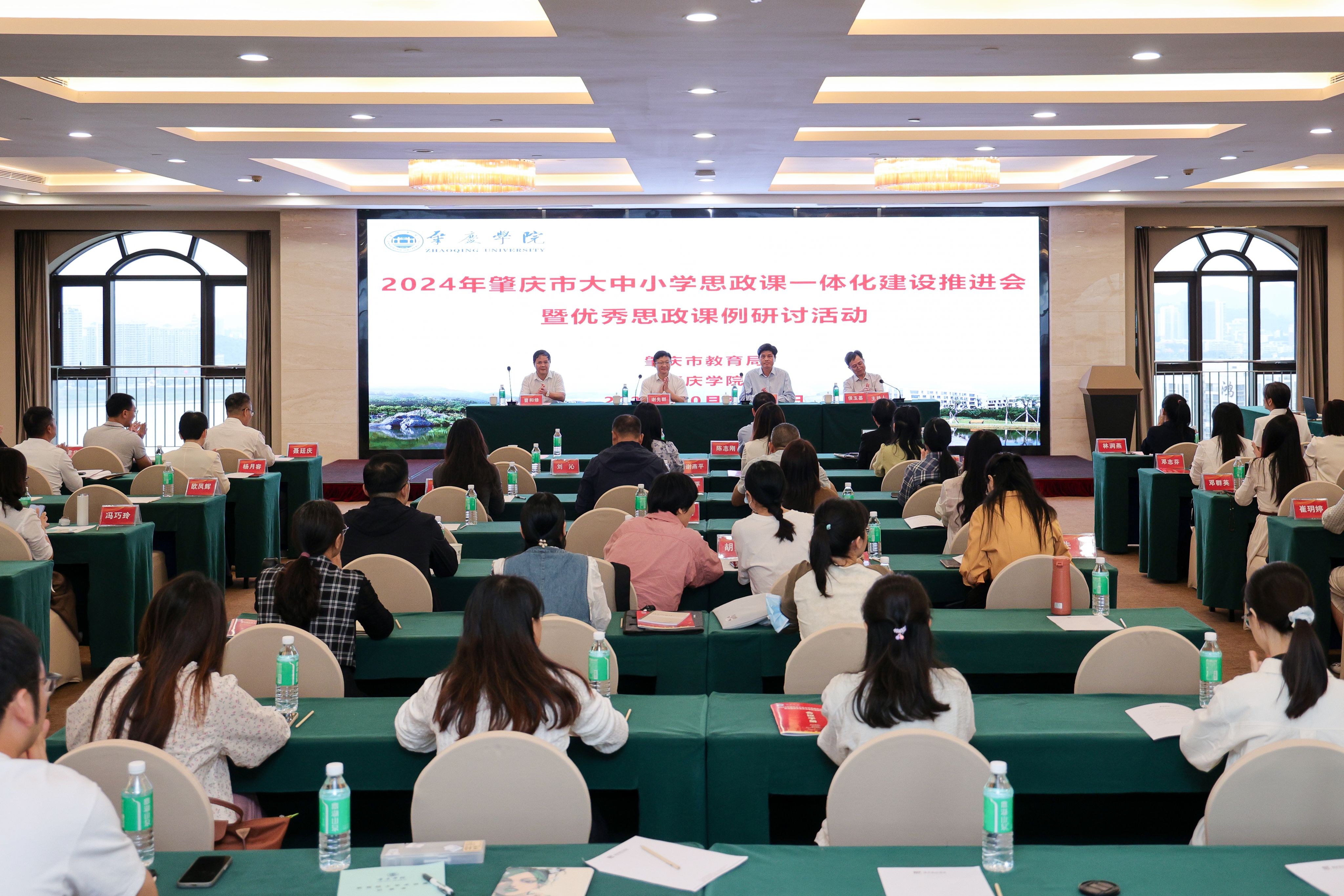 本网讯 10月25日—27日,肇庆市大中小学思政课一体化建设推进会暨优秀思政课例研讨活动成功举办。会议由万象城娱乐awc线路和肇庆市教育局联合主办,万象城娱乐awc线路马克思主义学院、肇庆市教师发展中心协办。学校党委副书记欧洪湛、肇庆市委教育工委常务副书记、市教育局党组书记、局长谢先群、万象城娱乐awc线路马克思主义学院党委书记侯玉基、院长曹和修出席会议,全市大、中、小学思政课教师100多人参加会议。侯玉基主持会议。