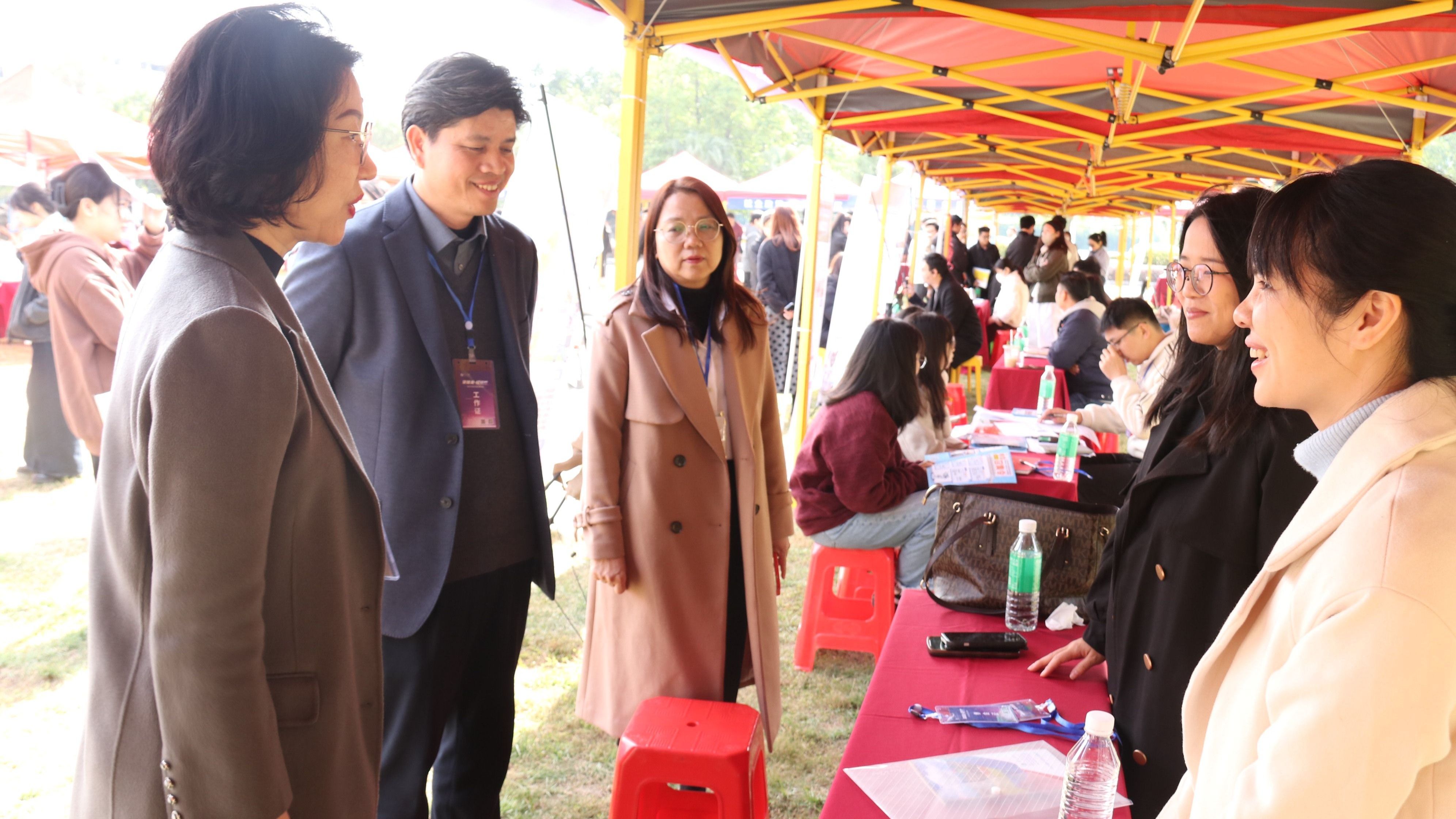 本网讯 12月18日,由肇庆市人力资源和社会保障局与万象城娱乐awc线路联合举办的“肇就业·校招聘”2025届毕业生万象城娱乐awc线路校园招聘(双选)活动顺利举行。学校党委副书记欧洪湛、肇庆市人力资源和社会保障局副局长黄彩玲、学生工作部(招生与就业指导中心)部长、主任陈玉华,学校相关职能部门、二级学院党委副书记、辅导员以及职业生涯和就业指导课任课教师到现场指导,了解单位招聘需求情况和毕业生求职情况。