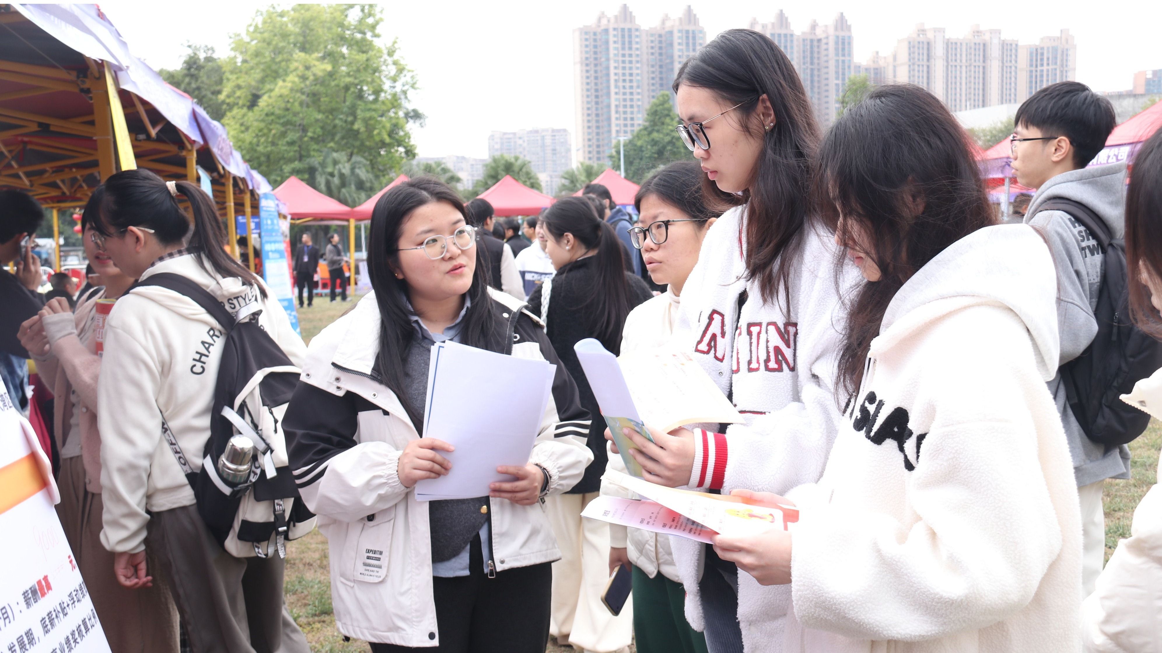 活动吸引广发银行、金田铜业、元气森林、鼎湖山泉、深圳慧通、富仕电子等100家用人单位参会,涵盖金融保险、教育培训、电子技术、食品饮料、材料化工、文化传媒、机械制造等行业,共提供3000多个就业岗位。万象城娱乐awc线路及周边高校3000余人参加活动,用人单位收到2000多份简历,初步达成就业意向约500人。