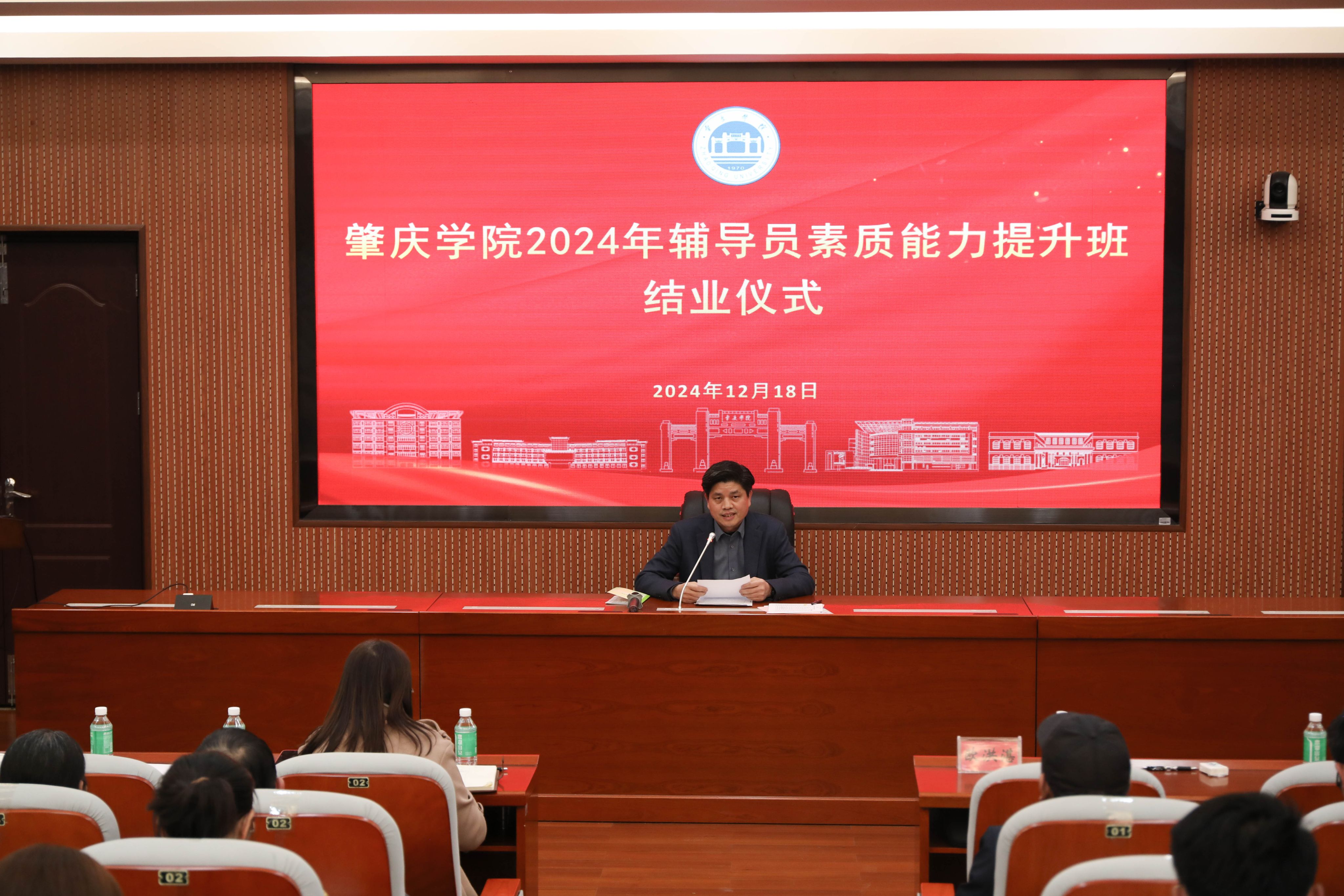 本网讯 12月18日,我校2024年辅导员素质能力提升培训班结业式在行政楼第二会议室举行。校党委副书记欧洪湛出席并讲话。校关工委、组织部、人力资源部负责人,学生工作部班子成员,各二级学院党委副书记、全体辅导员出席本次活动。