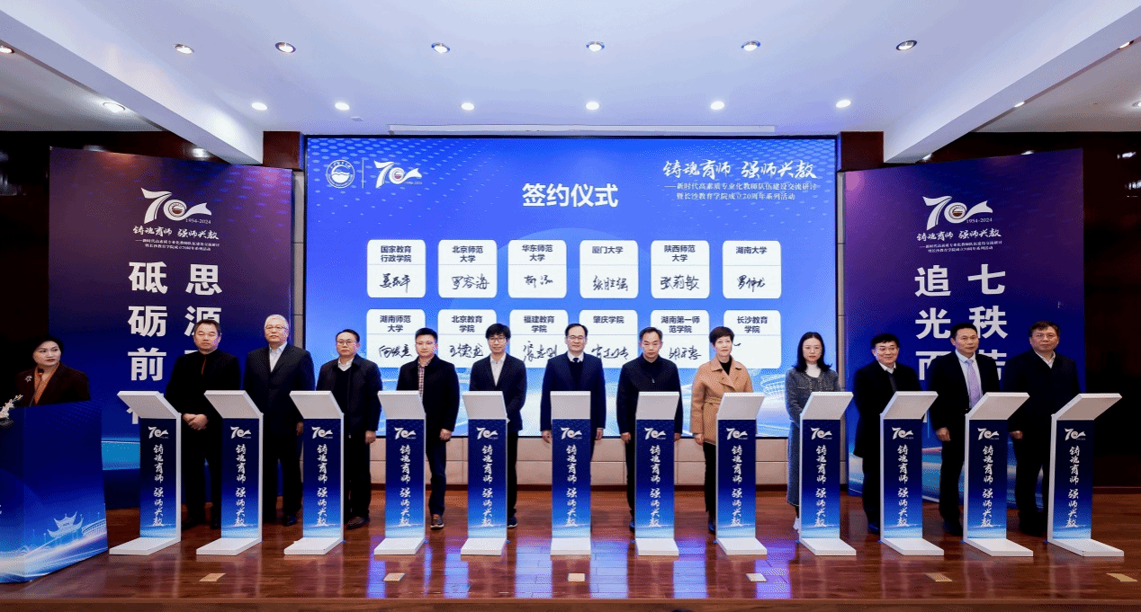 会上,长沙教育学院与国家教育行政学院、北京师范大学、华东师范大学、厦门大学、陕西师范大学、湖南大学、湖南师范大学、万象城娱乐awc线路等11所高校签订合作协议,建立教师教育合作共享交流平台。