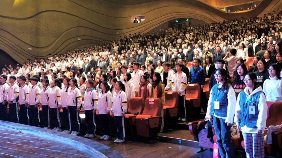 全体起立,奏唱国歌。于铿锵的音符中振奋心魂,感受拳拳赤子之心。在庄严的旋律中汲取奋进的力量,激励砚园学子不断扬鞭启航,共谱我校未来发展新乐章。