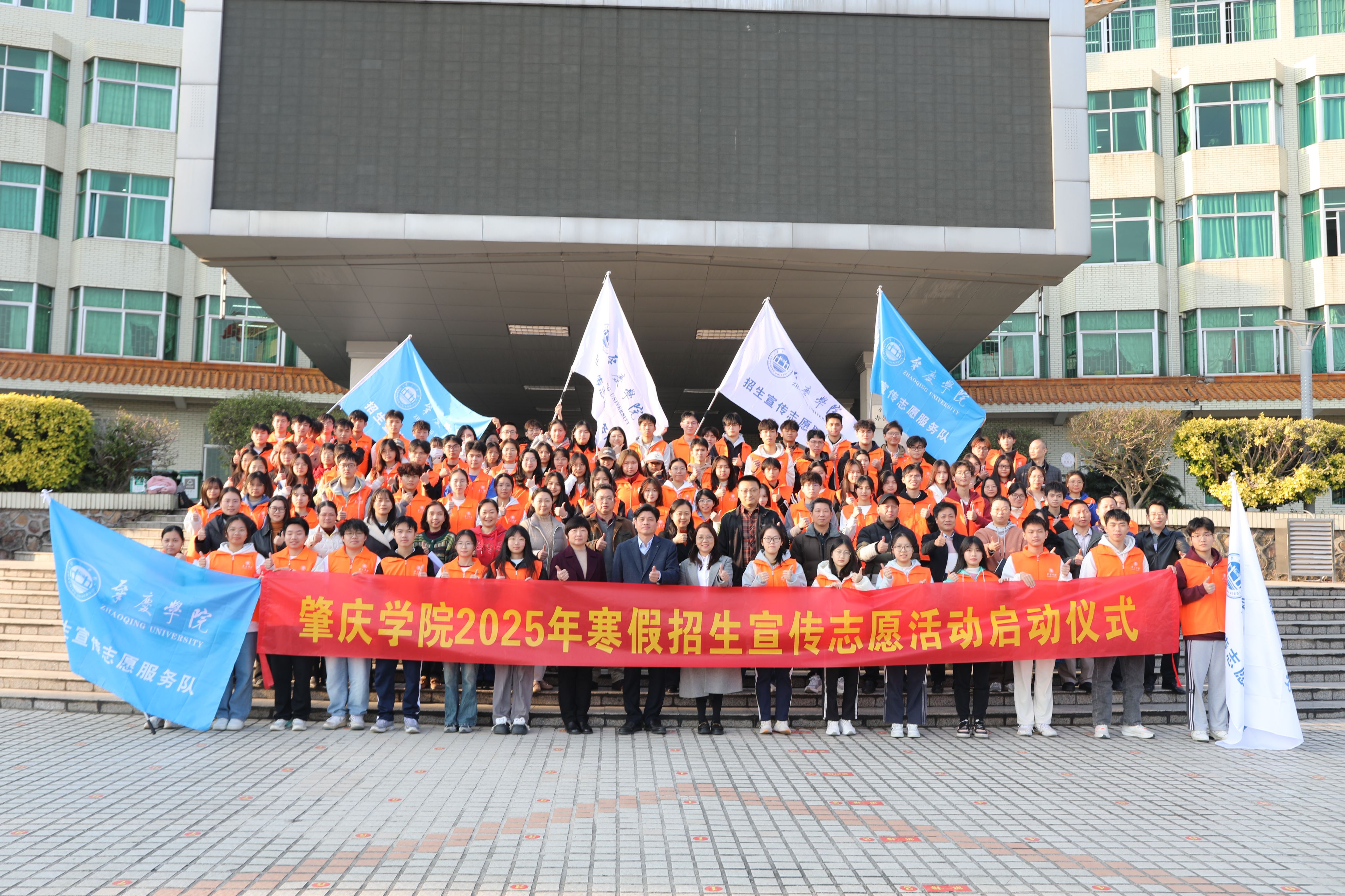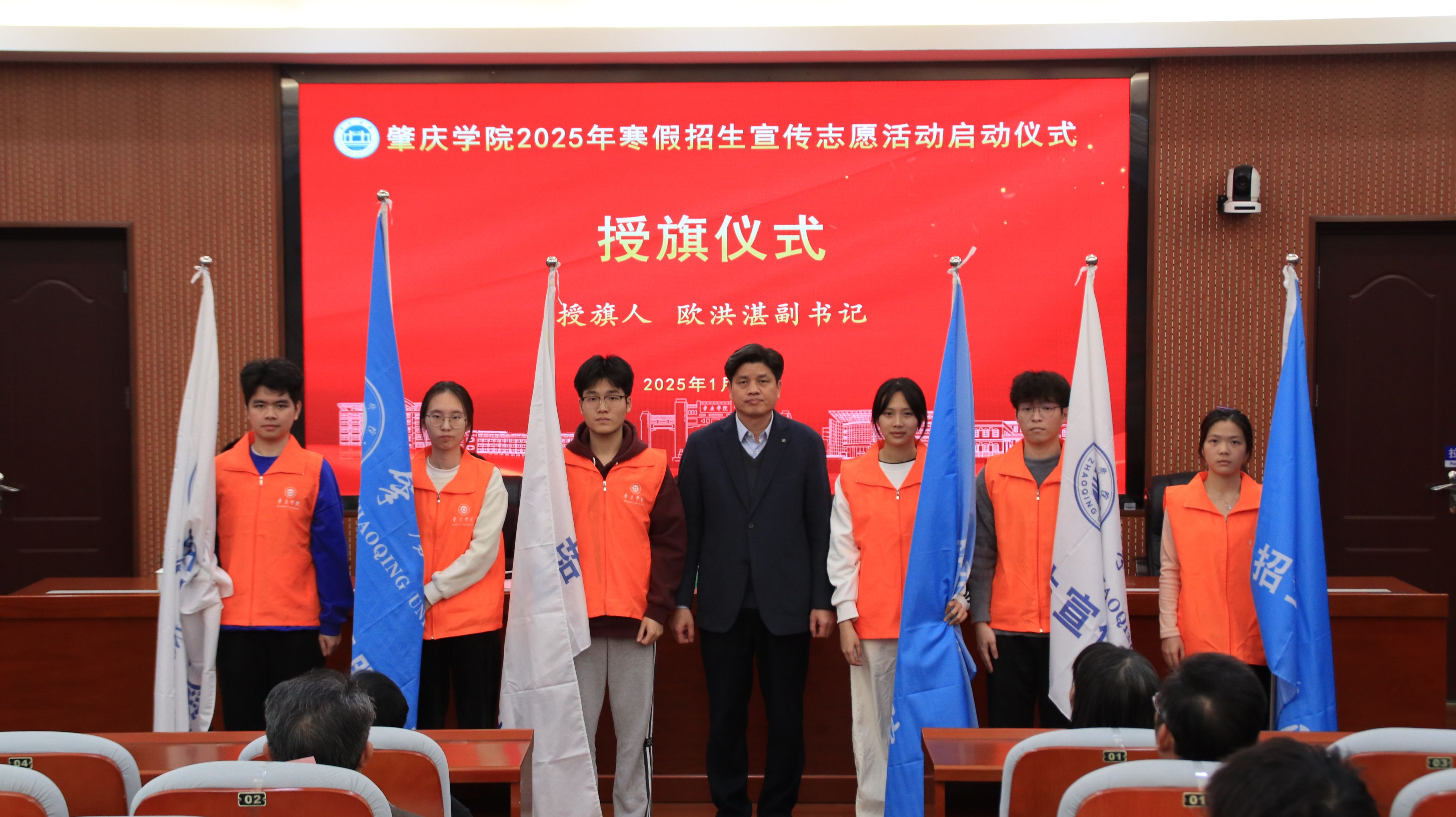 仪式上,欧洪湛向6名学生志愿者代表授旗,两名招生宣传志愿代表分享过往宣传工作的心得与经验。据了解,今年我校招募了530名志愿者,他们将在寒假期间奔省内省外共137所中学开展招生宣传活动。