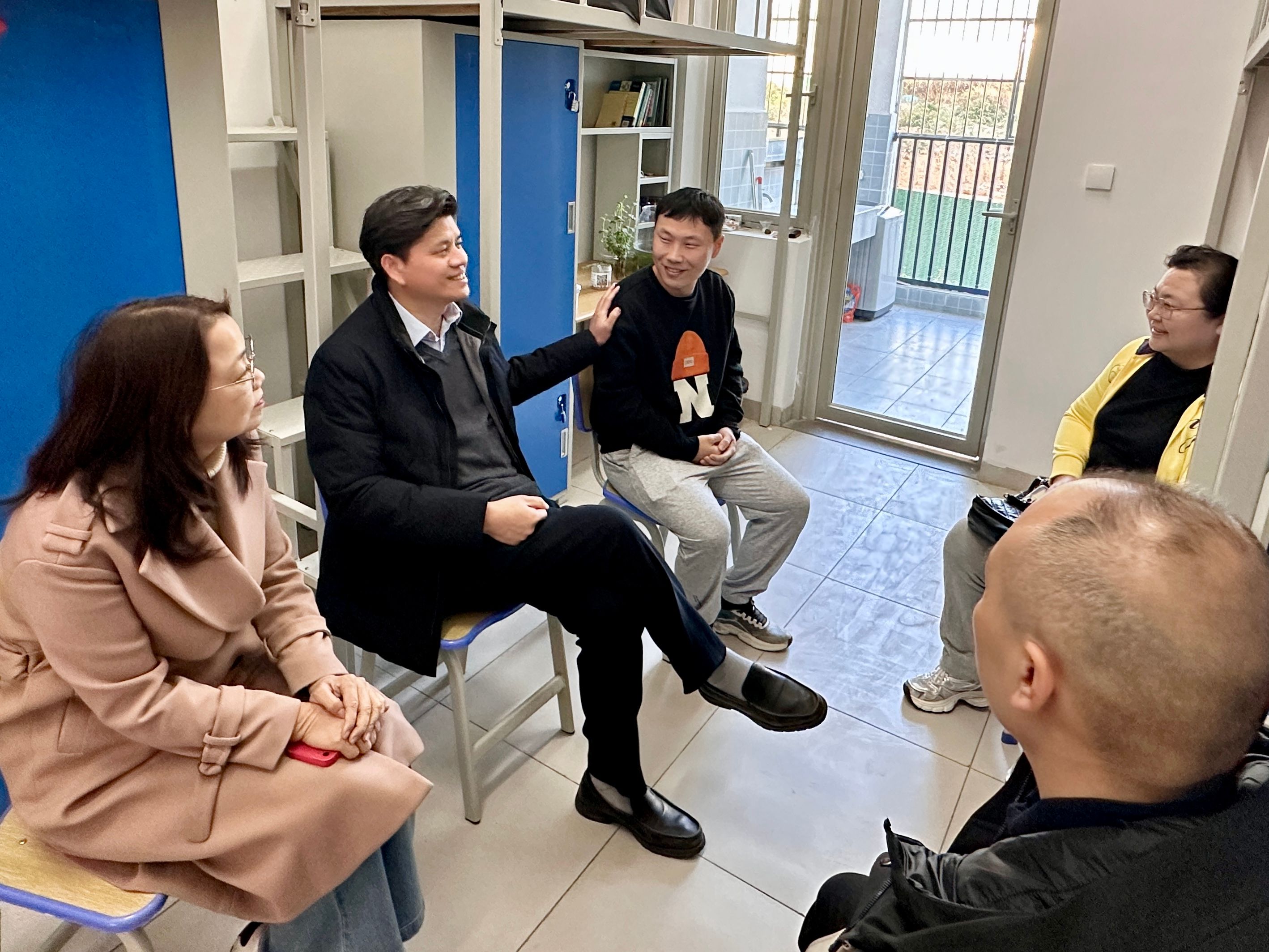 在新建的研究生宿舍,欧洪湛与留校学生亲切交谈,对同学们假期坚持学习的精神表示肯定。他详细了解他们的学习、生活情况,仔细询问寒假期间的实际需求与困难。“学习生活上有没有什么困难?”“有空要多跟家里通电话、报平安呀。”欧洪湛表示,学校非常重视学生的学习生活条件,特别是在春节这样的重要节日,各部门要全力做好留校学生的服务保障工作。