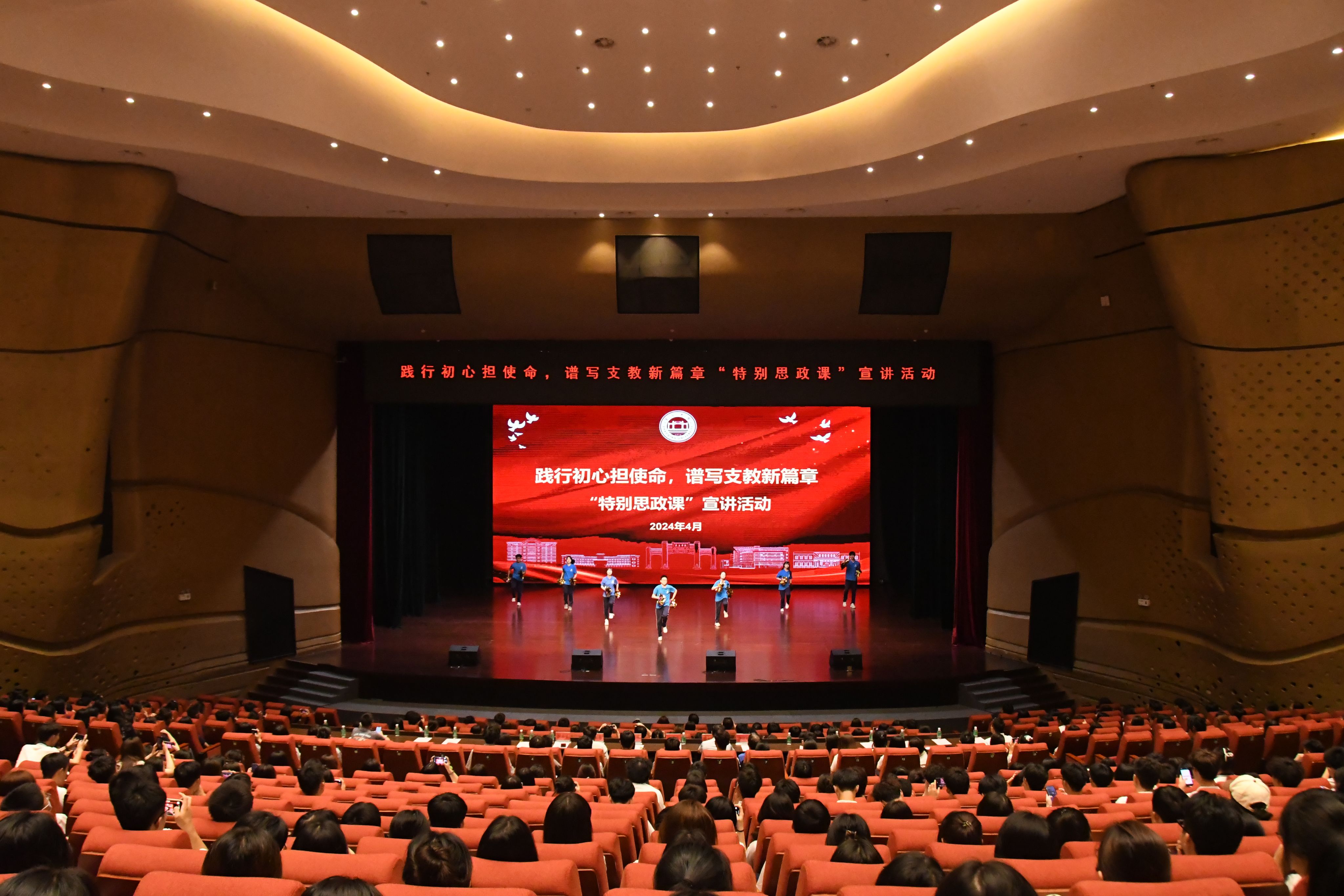 4月24日,为深入贯彻落实习近平总书记关于“大思政课”的重要精神以及教育部等十部门印发《全面推进“大思政课”建设的工作方案》,学生工作部联合宣传统战部、校团委、马克思主义学院开展以“践行初心担使命,谱写支教新篇章”为主题的“特别思政课”宣讲活动,引导和鼓励青年大学生为祖国奉献青春、建功立业,培育和践行社会主义核心价值观。本年度,我校共选拔40名大学生分赴西藏墨脱县和新疆疏附县开展支教工作,均荣获“优秀援藏人才”称号和“优秀实习生”称号。其经验做法凝练的典型工作案例荣获全省高校美育改革创新优秀案例一等奖,“我的支教故事”征文获全省三等奖1项。