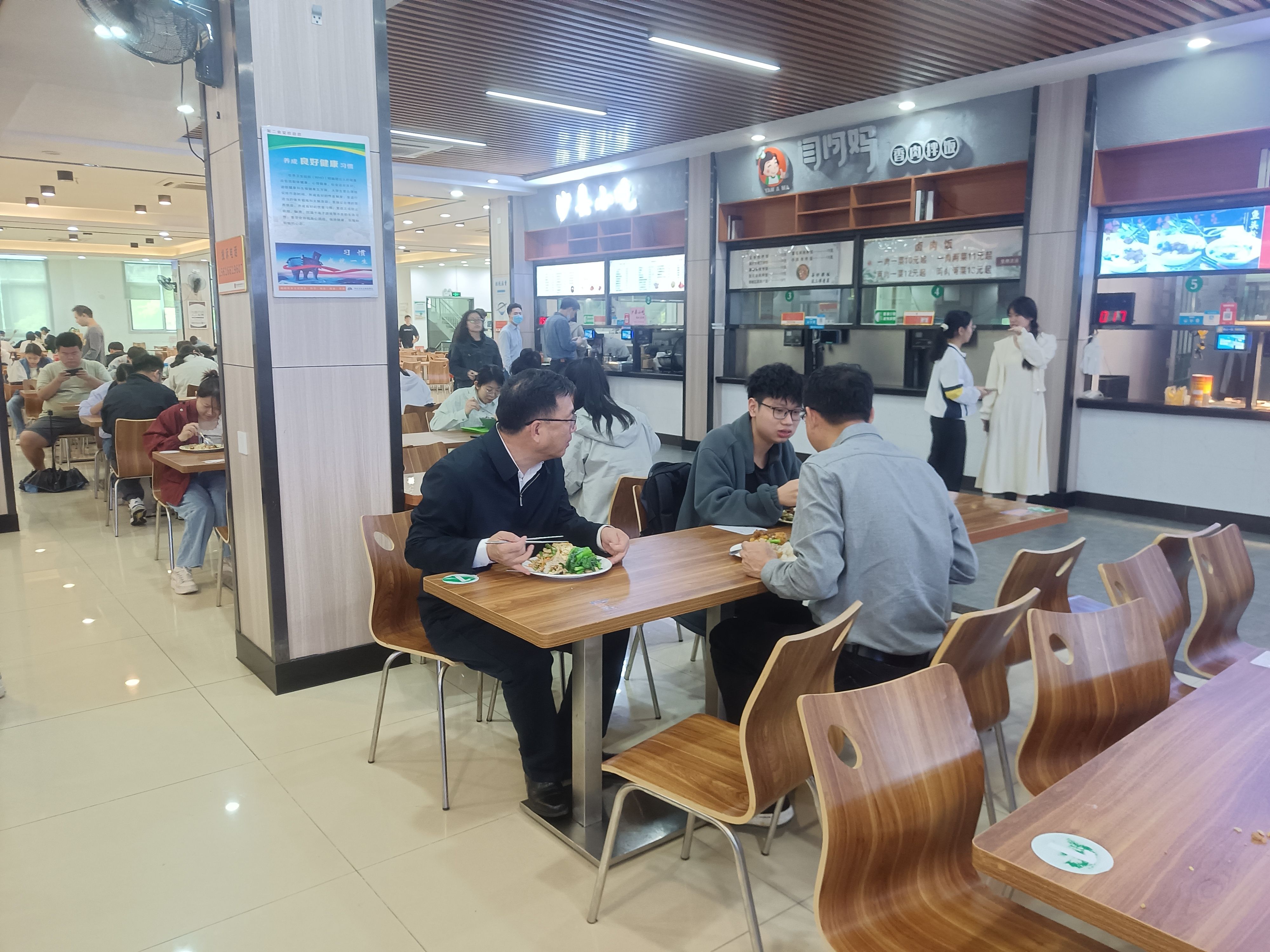会后,谢冠华一行深入学校食堂开展食品安全检查,并在食堂陪餐。谢冠华与学生亲切交谈,询问他们对食堂饭菜质量、价格、服务等方面的意见和建议,鼓励学生们积极反馈,共同促进学校食堂服务质量的提升,并叮嘱同学们要均衡饮食、注意营养搭配,养成良好的饮食习惯。