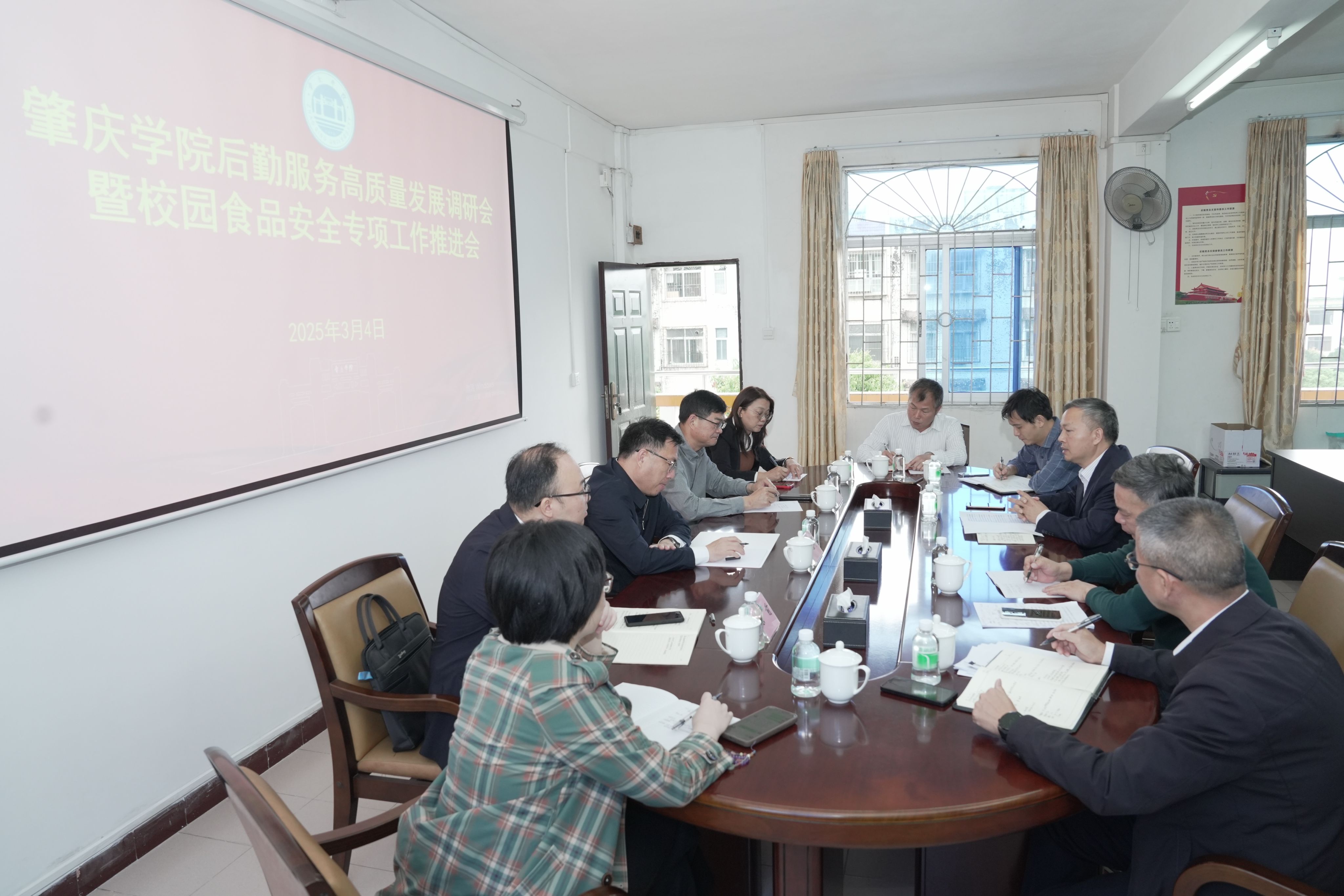 谢冠华就如何推进学校后勤服务高质量发展、落实校园食品安全管理等工作提出了明确要求:一是要求全面学习领会上级有关“校园餐”管理方面的政策、文件精神,持续推进校园食品安全和膳食经费管理突出问题专项整治工作;二是要进一步提高政治站位,深化思想认识,强化使命担当,压实工作责任,严格执行食品安全监管“四个最严”要求和“日管控、周排查、月调度”工作制度,筑牢校园食品安全防线,保障师生饮食安全;三是对照问题认真研究分析,着力完善规章制度建设,建立风险防范长效机制,形成源头严防、过程严管、风险严控的校园餐管理体系,守好校园食品安全底线;四是要求坚持以师生为本,践行“三服务三育人”工作宗旨,推进后勤服务信息化、科学化、精细化管理,严格落实服务监管,不断向新、向上、向强,促进后勤服务高质量发展。