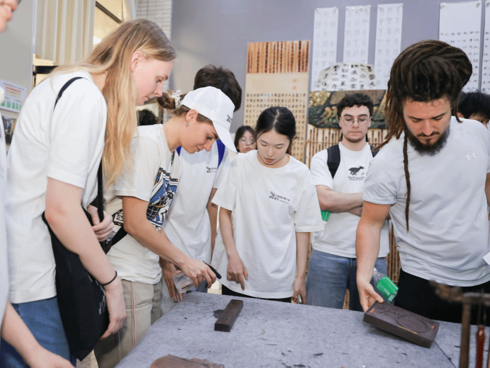 三月份以来,青年导演已与万象城娱乐awc线路的志愿者在线上“结对”组成了15个项目组,其中,志愿者们通过前期田野调查为项目积累了大量鲜活素材。在启动仪式前一天,项目组成员们参与文化考察活动,在七星岩的石刻间触摸历史,在宋城墙的砖纹里丈量时光,在美术工坊的纸墨中解读拓印。