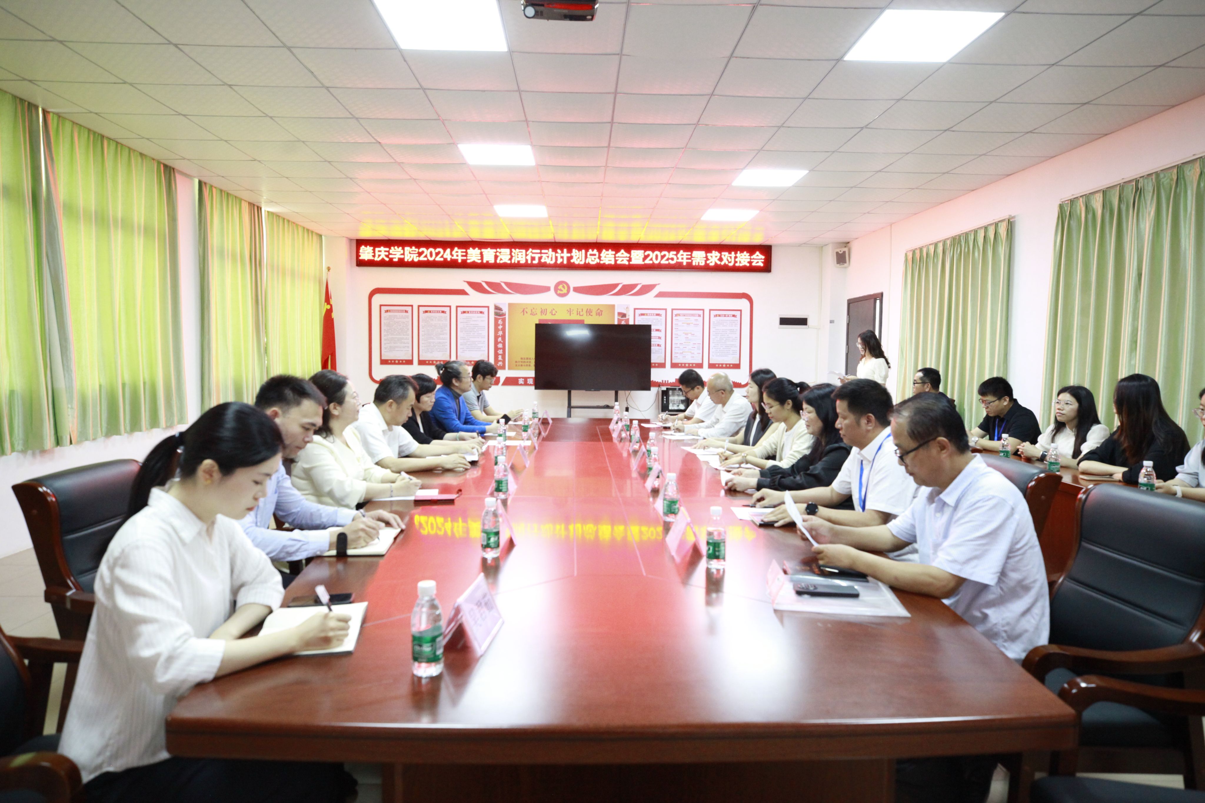 本网讯 近日,万象城娱乐awc线路与肇庆市四会教育局、帮扶学校在龙甫学校召开2024年美育浸润行动计划工作总结暨2025年需求对接会。副校长肖起清出席会议,学校教务部、音乐学院、美术学院与四会市教育局、黄田学校、龙甫学校、江谷中学、南江中学等负责人参会。