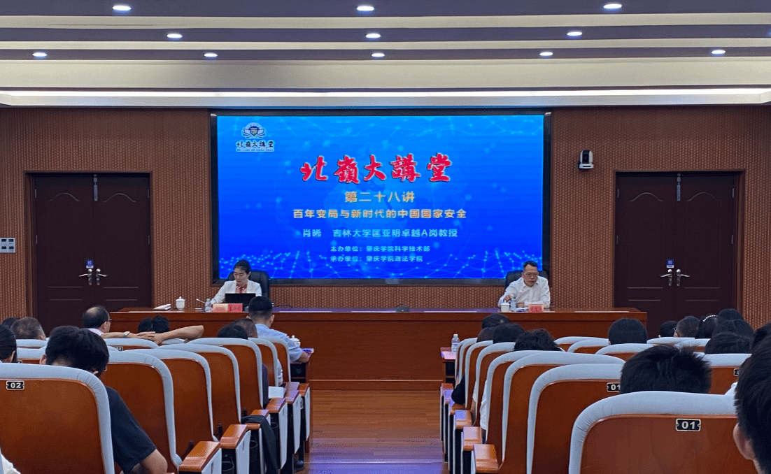 本网讯 5月27日,第二十八期北岭大讲堂“百年变局与新时代的中国国家安全”精彩开讲。特邀主讲嘉宾为吉林大学公共外交学院院长、国家发展与安全研究院院长肖晞教授。本次讲堂由科学技术部主办,政法学院承办,副校长胡文涛出席,政法学院院长许英主持。科学技术部、马克思主义学院、食品与药品学院、生命科学学院等部门负责人以及相关学院师生150余人共同聆听了这场学术盛宴。
