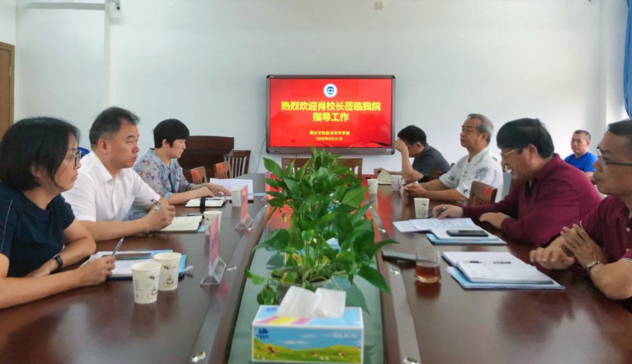 党委书记谢佐永汇报了学院党建,招生、就业、疫情防控、安全维稳等工作情况,院长张旭东就学院的基本情况,专业认证、审核评估、打造一流专业、“冲补强”、服务社会等方面进行了汇报,副院长文雪汇报了教育硕士点有关工作。