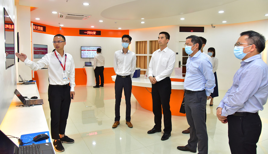 在肇庆联通总部大楼,吴业春一行参观行业展厅,了解联通公司运用5G技术推进各种云业务系统建设的情况,并专门听取公司在全国各地开展智慧校园建设的实践案例以及对我校深化智慧校园建设的意见建议。他表示,双方可围绕人才培养、科技创新、项目申报、实验室建设等方面加强交流合作,推动学校和企业双方实现新发展。
