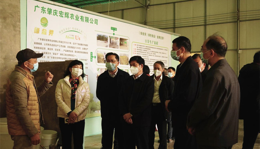 曾桓松一行与组团帮扶单位领导、德庆县、播植镇有关领导一起,首先来到位于高速公路出口的播植镇现代农产品产业园,了解园区建设情况,对园区扶农助农的经营理念、利益协同的合作模式、流通对接的区位选址给予充分肯定。接着,曾桓松一行又来到沙村玉米种植示范基地,对该基地充分发挥组团帮扶资源优势和联农带农辐射作用,以及形成科学种植、稳定供销、余料处理生产链的转型实践作出高度评价。随后,曾桓松一行又参观了豆芽生产示范基地,了解作物育苗、清洗、冷藏过程,对该基地打造肇庆市“菜篮子”绿色工程的发展定位寄予厚望。