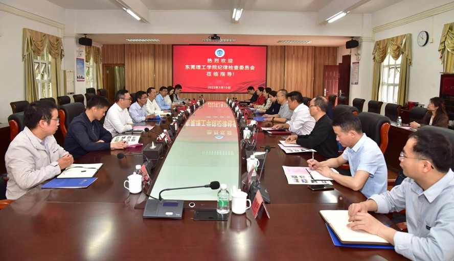 黄劲松对东莞理工学院同行到访表示热烈欢迎,并介绍了我校的办学历史、发展现状和未来规划,表示我校坚持以习近平新时代中国特色社会主义思想为指导,深入学习贯彻党的二十大精神,拥护“两个确立”,增强“四个意识”,坚定“四个自信”,做到“两个维护”,切实加强党风廉政建设,推动全面从严治党向纵深发展,为加快建设特色鲜明的高水平应用型大学营造风清气正的办学环境,东莞理工学院在纪检监察工作方面有着丰富的特色经验值得我校学习,希望两校加强交流合作,在互惠互鉴中助力实现改革发展的目标。