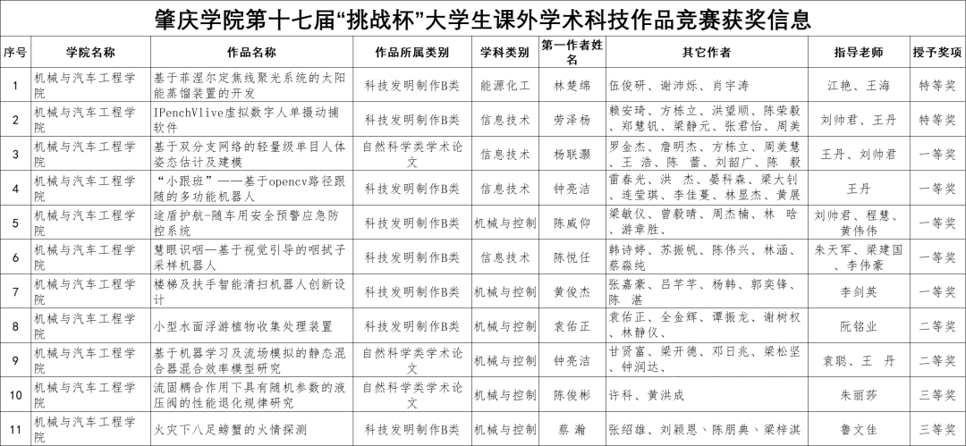 本网讯 在第十七届“挑战杯”大学生课外学术科技作品竞赛中,机汽学院参赛作品获特等奖2项、一等奖5项、二等奖2项、三等奖2项,以团体总分第一捧得“挑战杯”荣誉称号,这也是该学院连续第三年获此殊荣。