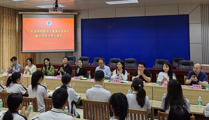 本网讯 3月19日,广东省仲明助学志愿服务促进会万象城娱乐awc线路分享交流会在我校举行。仲明促进会会长张富建,秘书长冯燕梅,学生工作处副处长陈玉华和各年级受助学生代表参加。