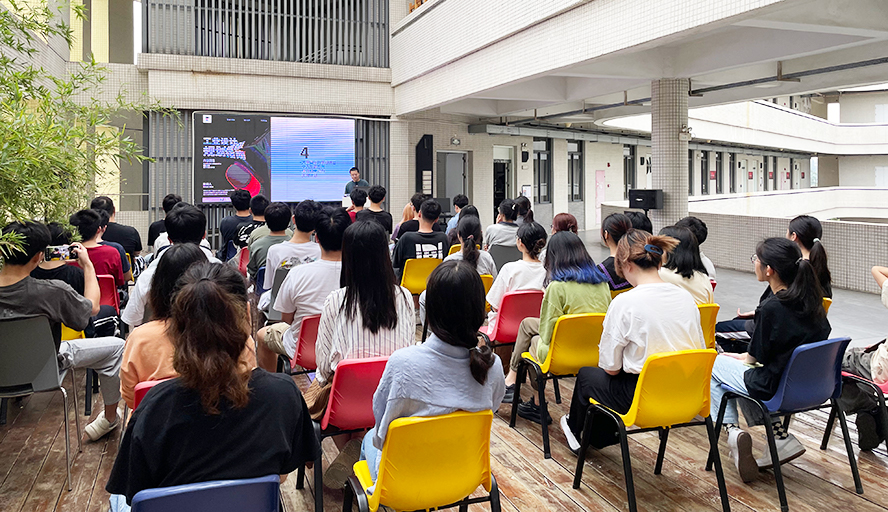 讲座上,主讲人分享自己的工业设计项目与获奖经历,介绍工业设计专业本科的学习内容和规划建议,并推荐国内外知名的设计比赛,为同学们的实习、工作与升学提出具体的建议。