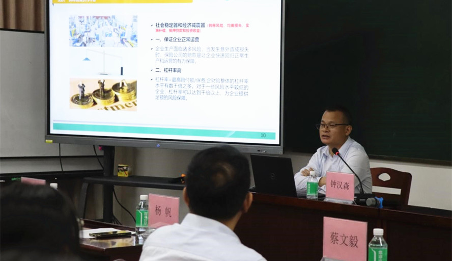 本网讯 为拓宽校企合作渠道,探索人才培养新模式,4月12日,数学与统计学院联合中国人寿财险肇庆中心支公司举行宣讲会。中国人寿财险肇庆中心支公司副总经理蔡文毅出席,宣讲会由学院党委书记杨帆主持。数学院19级毕业生、20级、21级部分学生代表参加宣讲会。