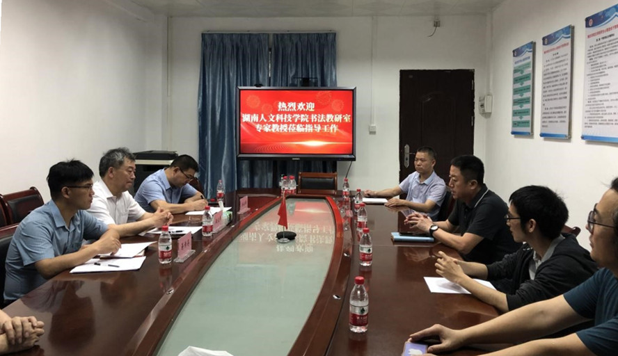 本网讯 4月18日,湖南人文科技学院美术与设计学院党总支书记谢光绎、书法学专业负责人蒋传存和书法学专业教师杨金榜一行到文学院交流考察。学院党委书记陈明华参加座谈,双方就专业建设、人才培养方案设置、常规教学及特色教学经验和教学成果展览等工作进行了交流探讨。