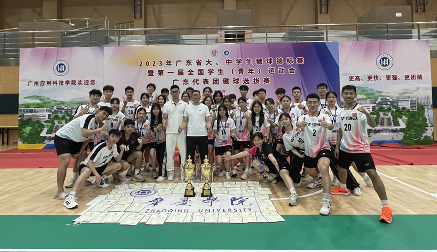 本网讯 2023年广东省大、中学生毽球锦标赛暨第一届全国学生(青年)运动会广东代表团毽球选拔赛5月22日在广州应用科技学院(肇庆校区)闭幕,我校代表队参加甲组和乙组的比赛。在领队刘汉坤,教练何波老师和周泽辉老师的带领下,全体队员发扬团结、拼搏、奋斗的精神,打好每一场赛事,再创新高。