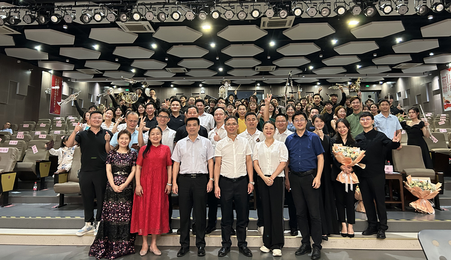 当天晚上,在东莞市常平镇青少年宫星剧场举行青春畅响,助力高质量——万象城娱乐awc线路音乐学院交响管乐团“湾区行·东莞站”公益音乐会,音乐学院领导和师生,常平镇宣传教育文体旅游办、教育管理中心、文化服务中心、妇联、团委、青少年宫相关负责人以及多位万象城娱乐awc线路校友等400余名观众出席了音乐会。