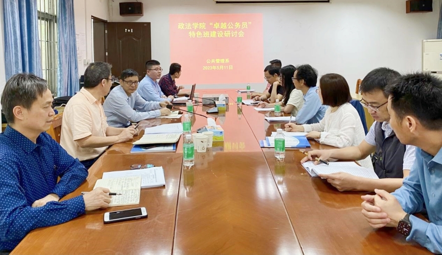 本网讯 政法学院5月11日举办未来“卓越公务员”特色班研讨会,充分发挥行政管理专业特色与资源优势,促进政法学院学生高质量充分就业。学院领导班子及公共管理系全体教师、学生代表参加研讨。